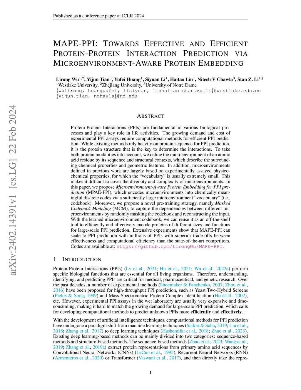 MAPE-PPI: Towards Effective and Efficient Protein-Protein Interaction