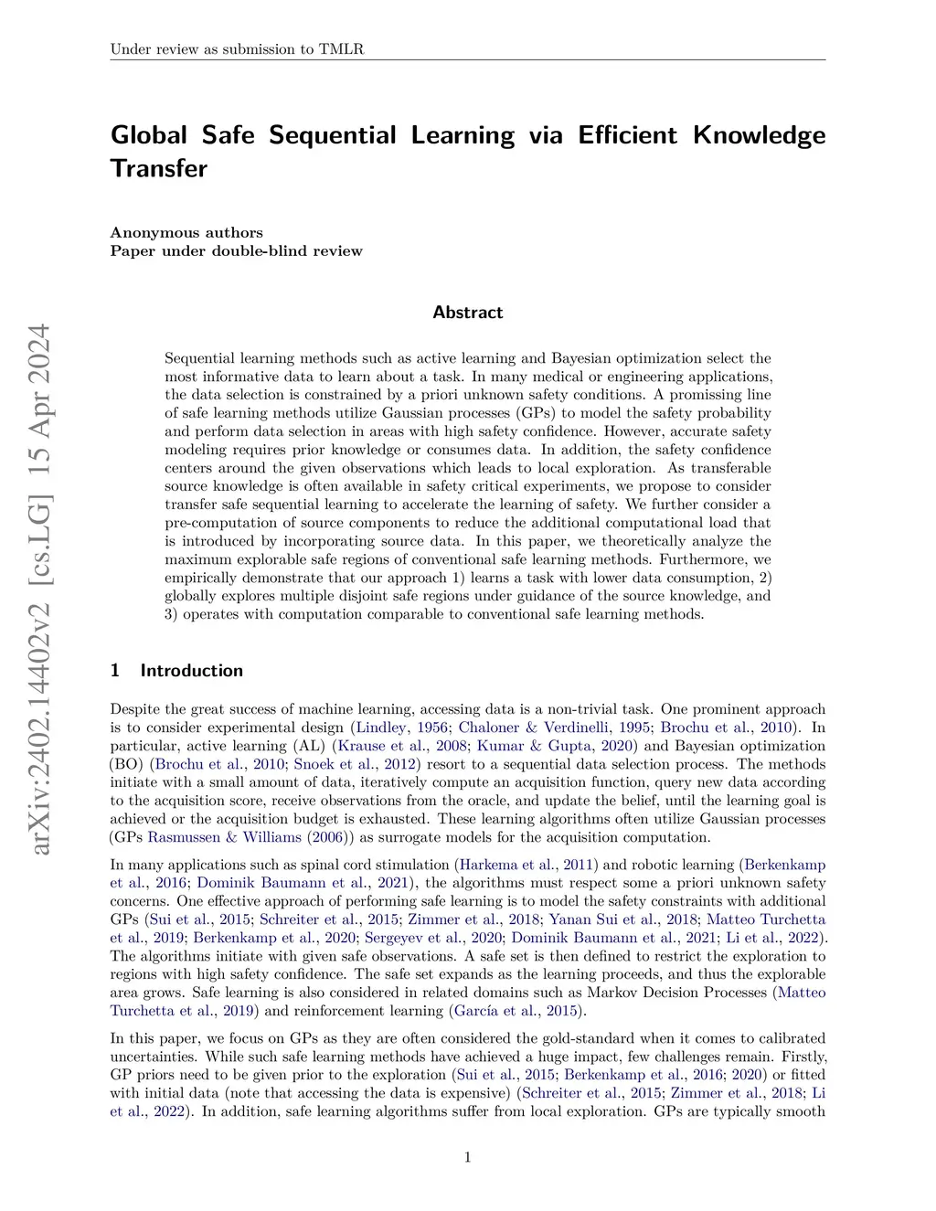 Global Safe Sequential Learning via Efficient Knowledge Transfer