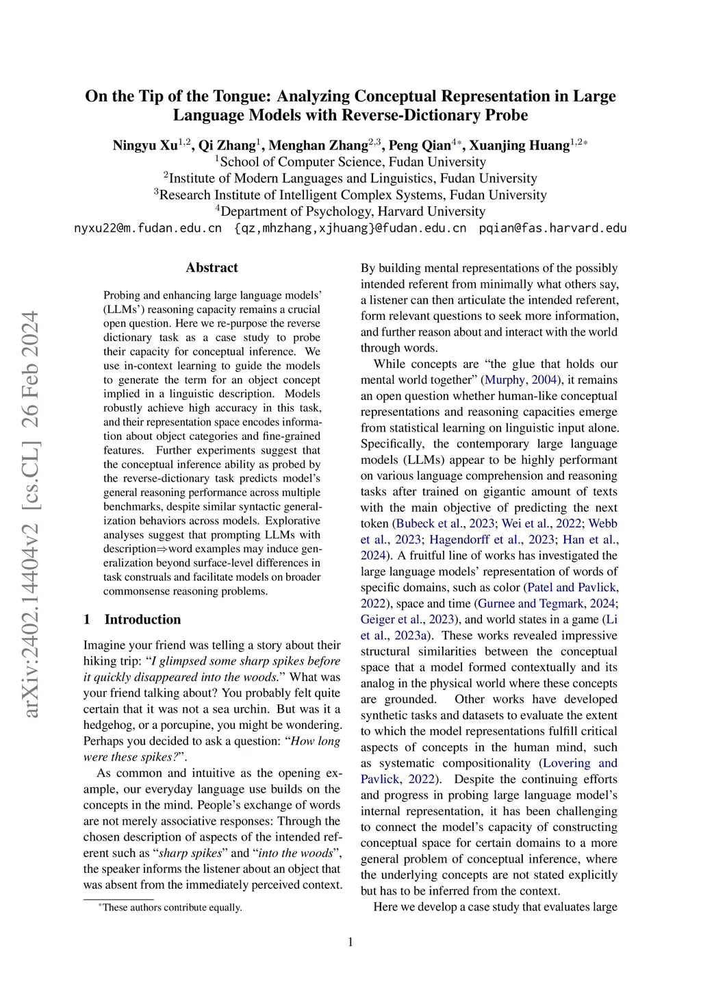 On the Tip of the Tongue: Analyzing Conceptual Representation in Large