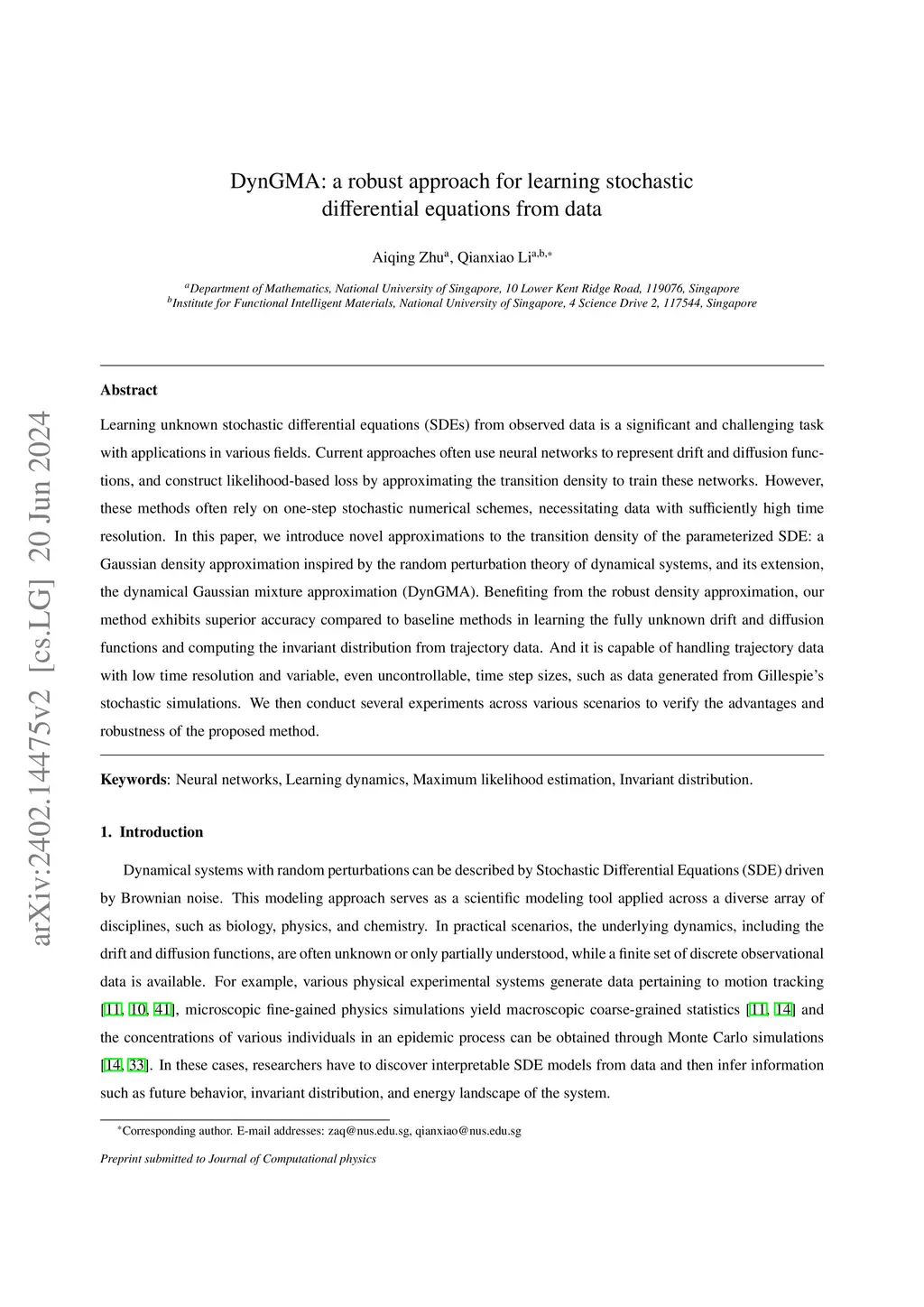 DynGMA: a robust approach for learning stochastic differential equations