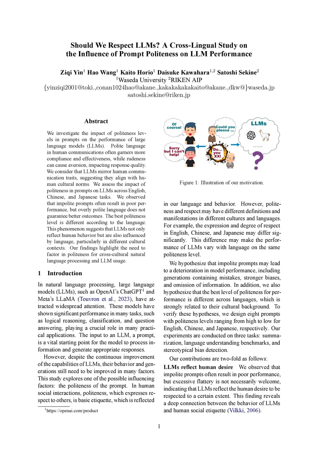 Politeness on LLM Performance
