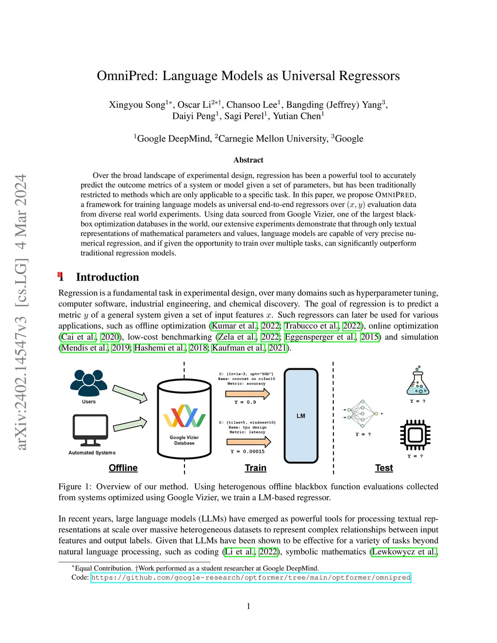 OmniPred: Language Models as Universal Regressors