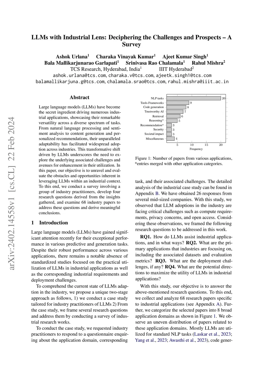 LLMs with Industrial Lens: Deciphering the Challenges and Prospects -- A Survey
