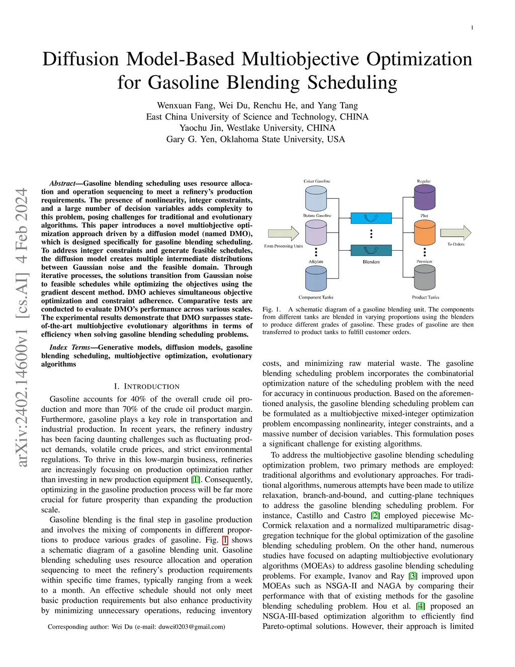 Diffusion Model-Based Multiobjective Optimization for Gasoline Blending