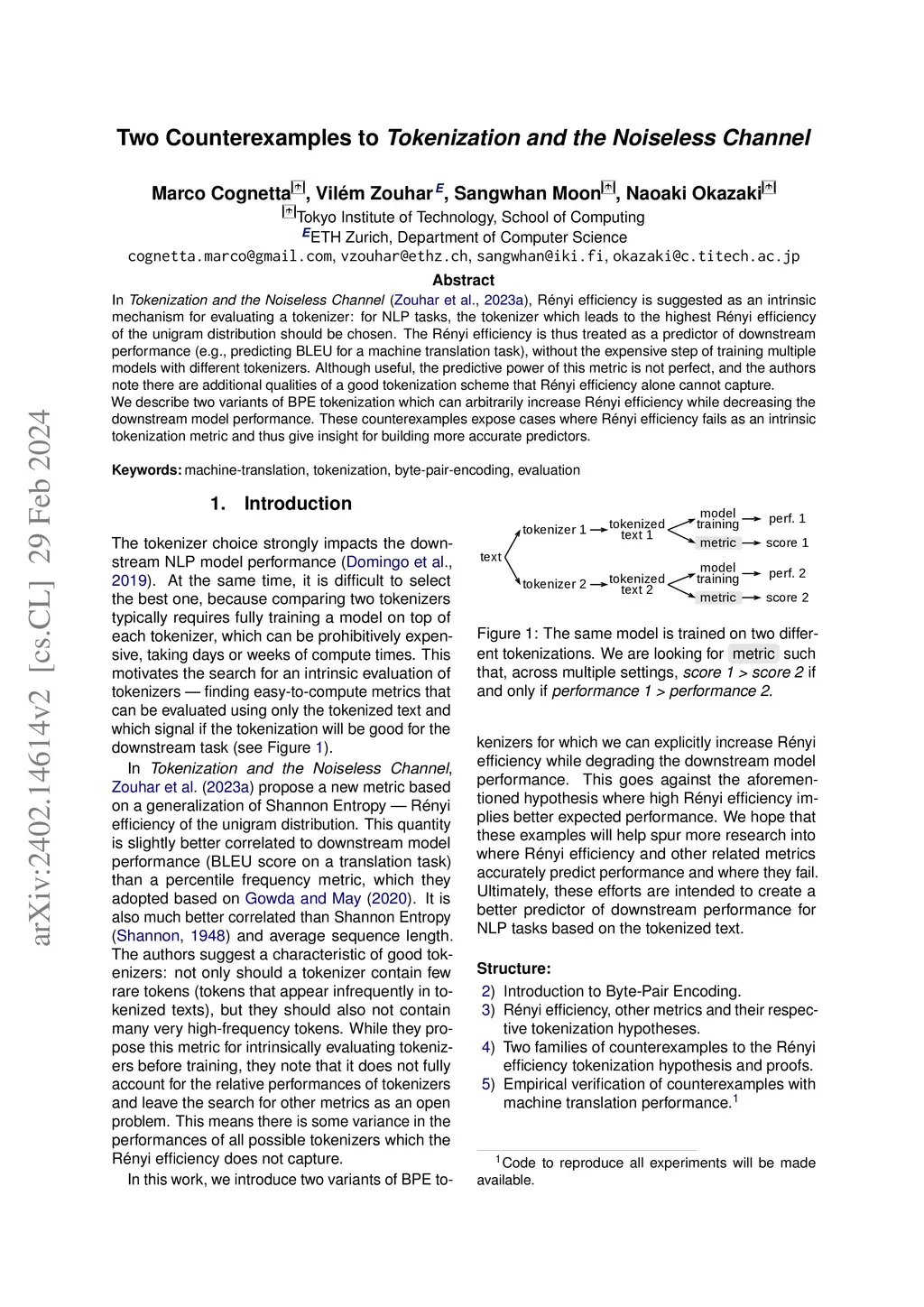 Two Counterexamples to Tokenization and the Noiseless Channel