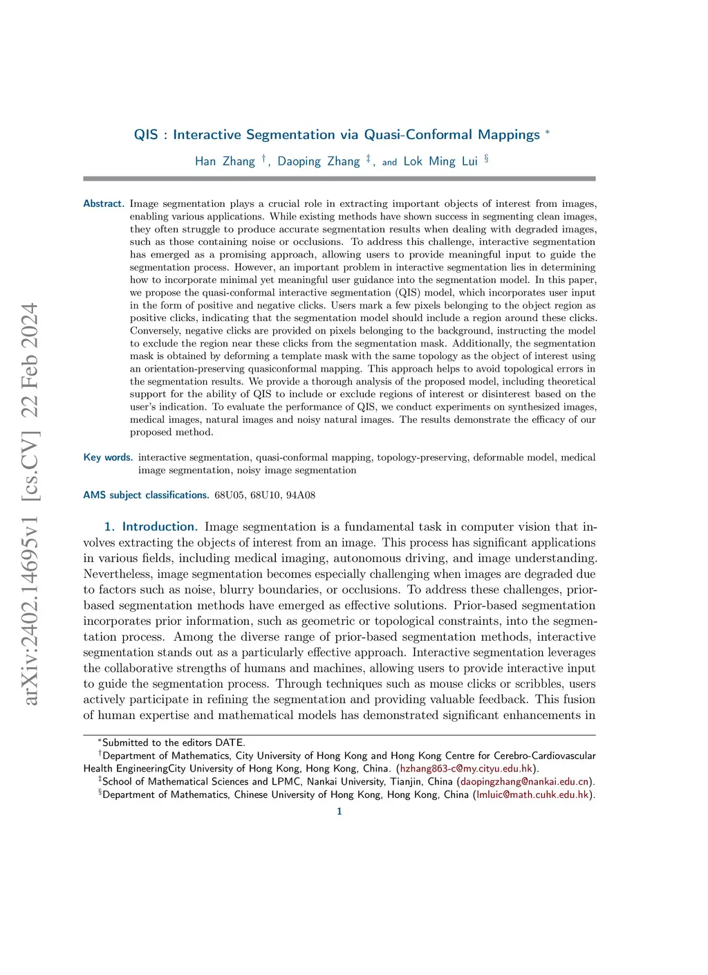 QIS : Interactive Segmentation via Quasi-Conformal Mappings