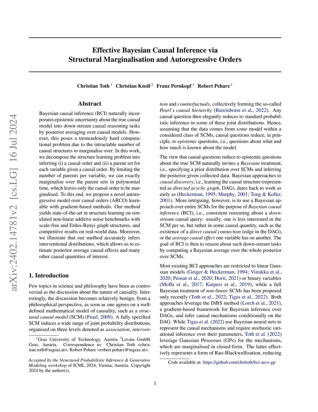 Effective Bayesian Causal Inference via Structural Marginalisation and Autoregressive Orders