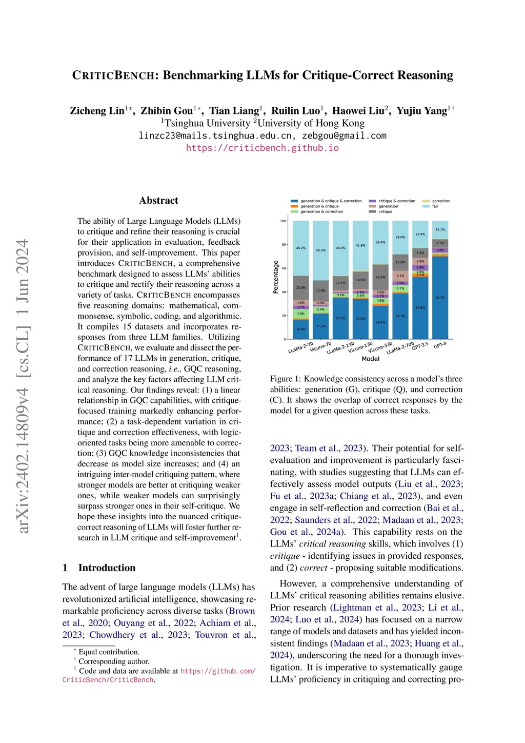 CriticBench: Benchmarking LLMs for Critique-Correct Reasoning