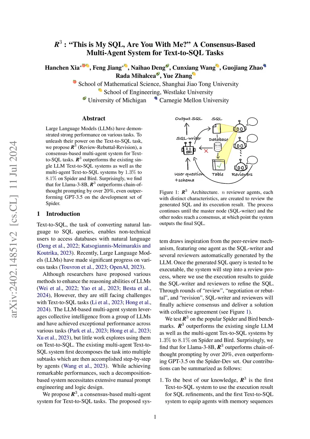 Large Language Models (LLMs) have demonstrated strong performance on various tasks. To unleash their power on the Text-to-SQL task, we propose (Review-Rebuttal-Revision), a consensus-based multi-agent system for Text-to-SQL tasks. outperforms the existing single LLM Text-to-SQL systems as well as the multi-agent Text-to-SQL systems by to on Spider and Bird. Surprisingly, we find that for Llama-3-8B, outperforms chain-of-thought prompting by over 20\%, even outperforming GPT-3.5 on the development set of Spider.