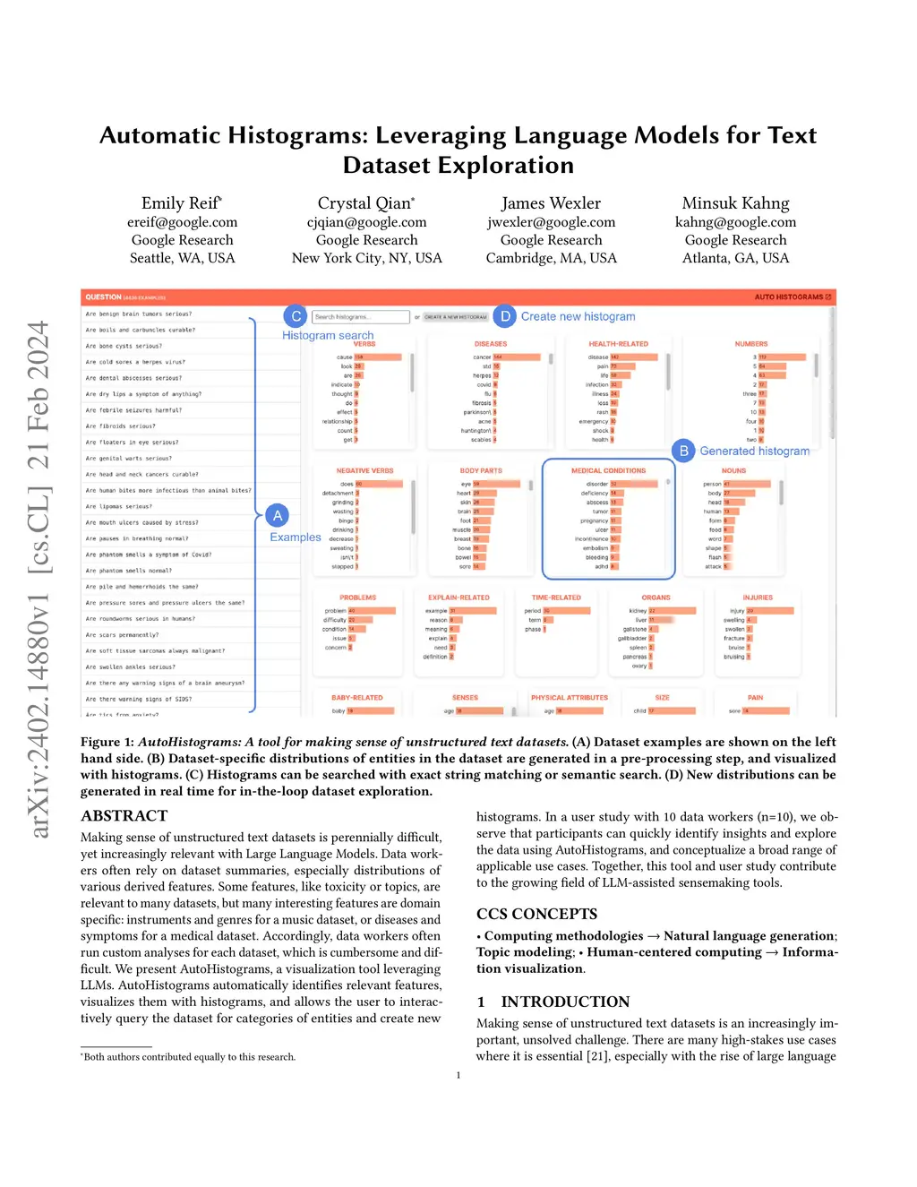 Automatic Histograms: Leveraging Language Models for Text Dataset