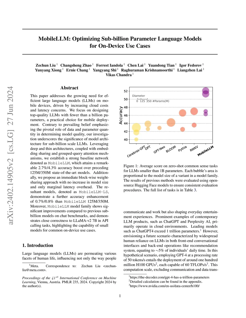 MobileLLM: Optimizing Sub-billion Parameter Language Models for
