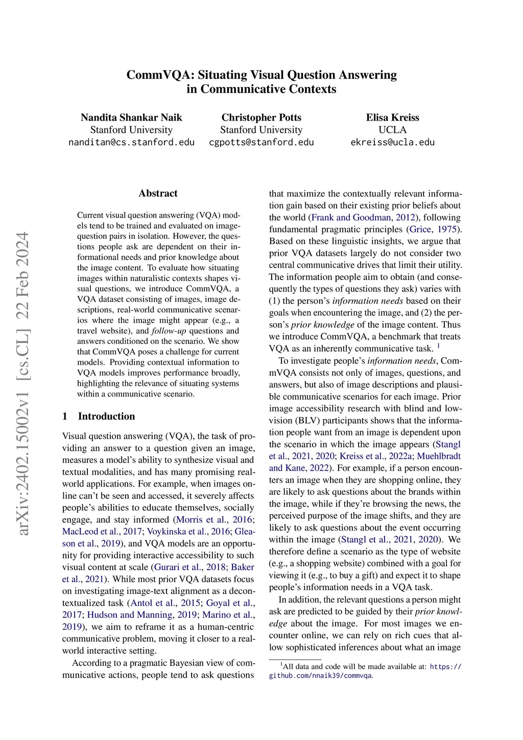 CommVQA: Situating Visual Question Answering in Communicative Contexts