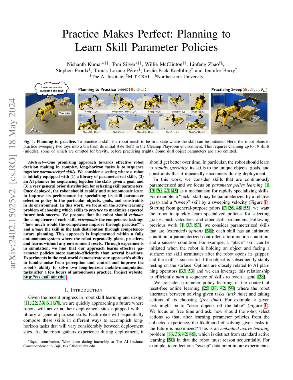 Practice Makes Perfect: Planning to Learn Skill Parameter Policies