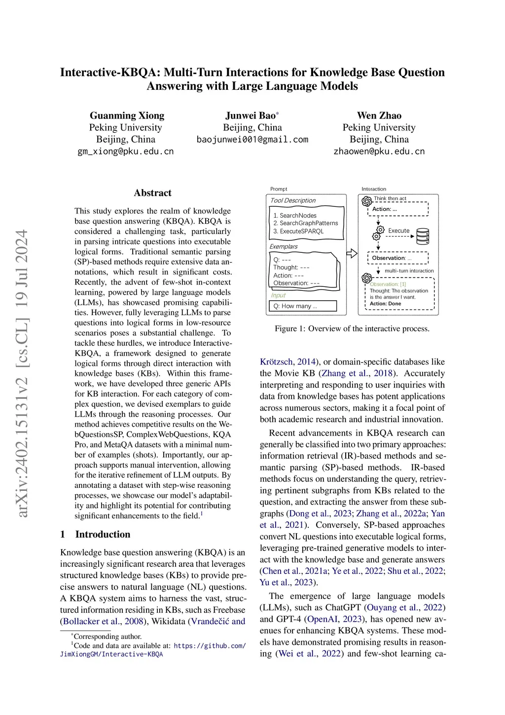 Interactive-KBQA: Multi-Turn Interactions for Knowledge Base Question Answering with Large Language Models