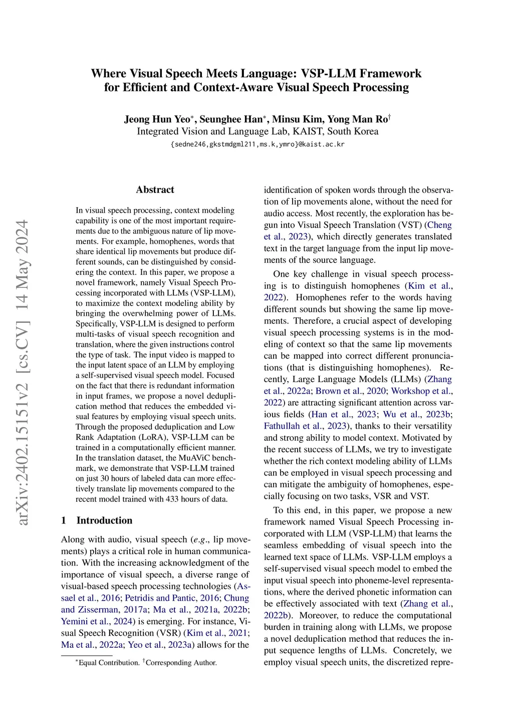 Where Visual Speech Meets Language: VSP-LLM Framework for Efficient and