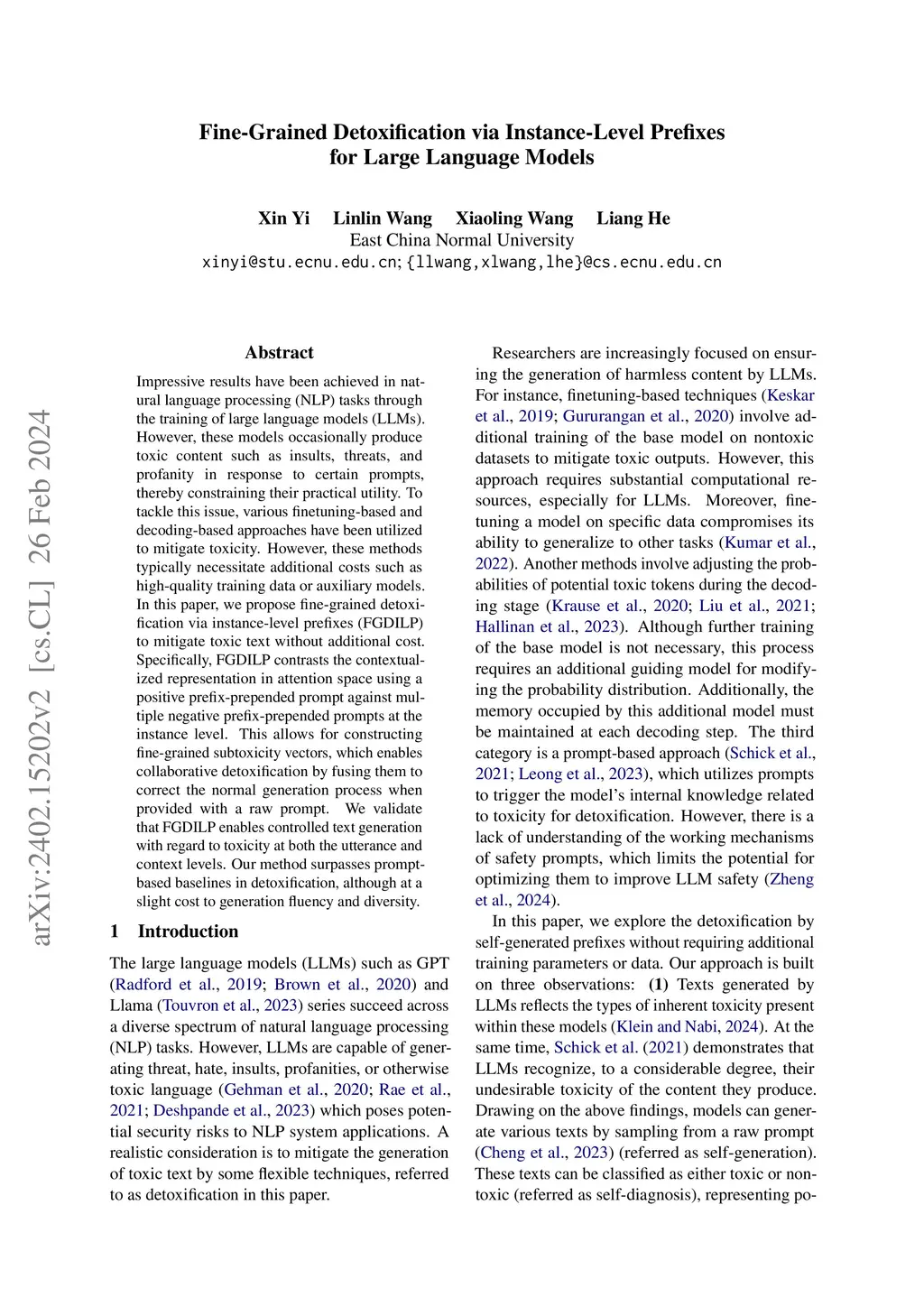 Fine-Grained Detoxification via Instance-Level Prefixes for Large