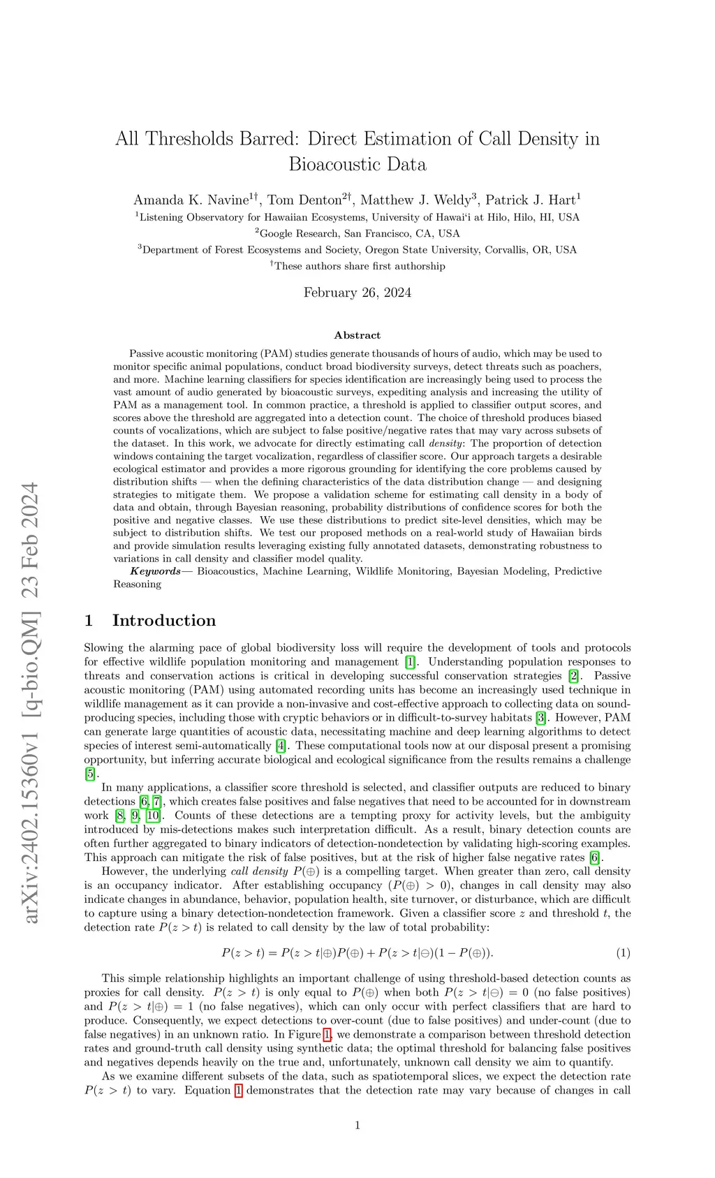All Thresholds Barred: Direct Estimation of Call Density in Bioacoustic