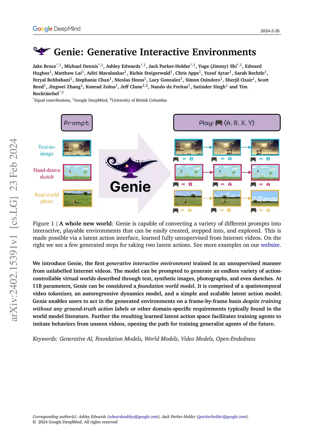 Genie: Generative Interactive Environments