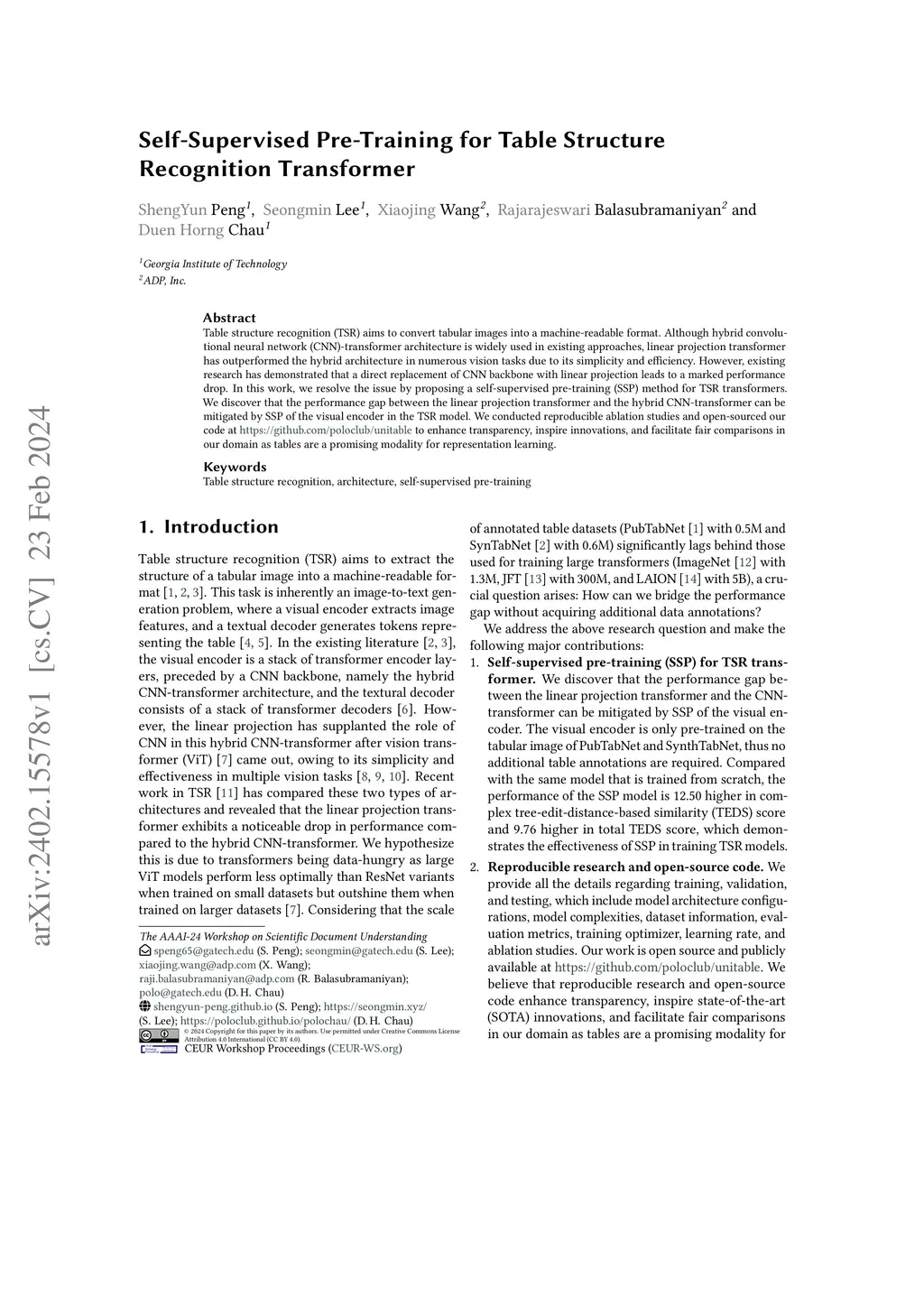 Self-Supervised Pre-Training for Table Structure Recognition Transformer