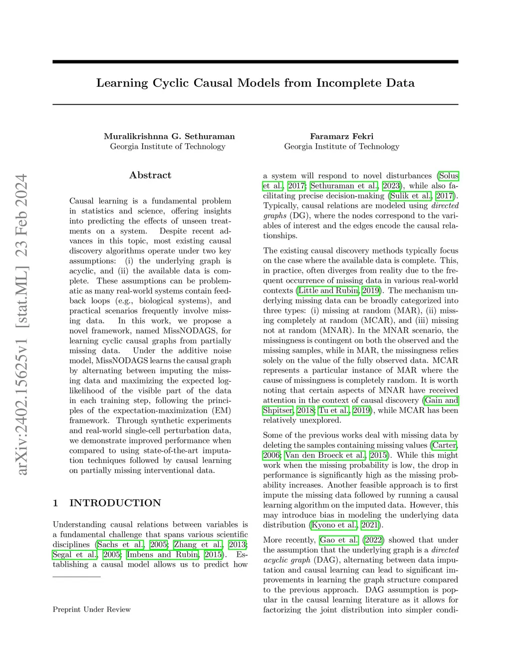 Learning Cyclic Causal Models from Incomplete Data