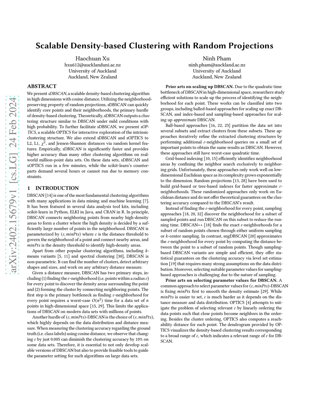Scalable Density-based Clustering with Random Projections