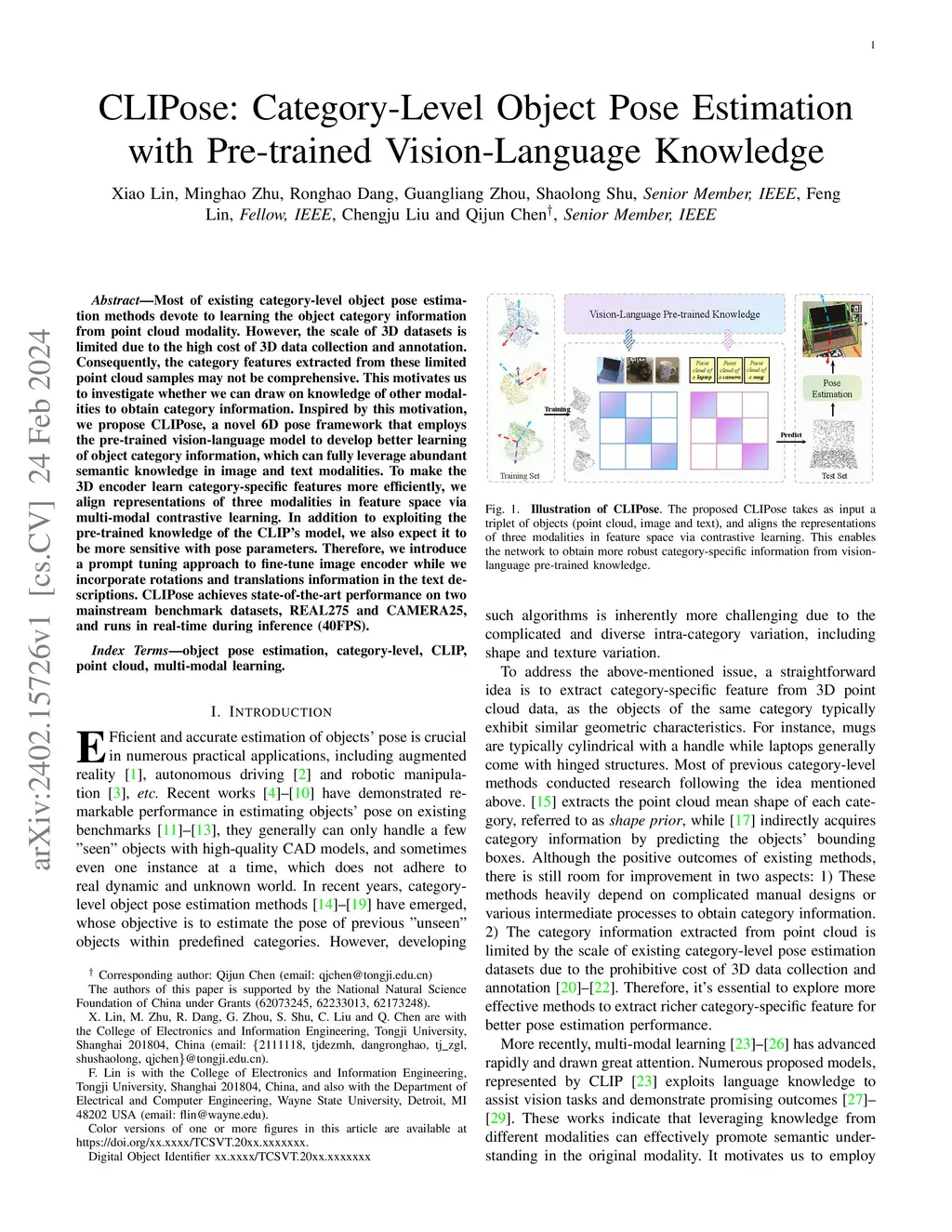 CLIPose: Category-Level Object Pose Estimation with Pre-trained