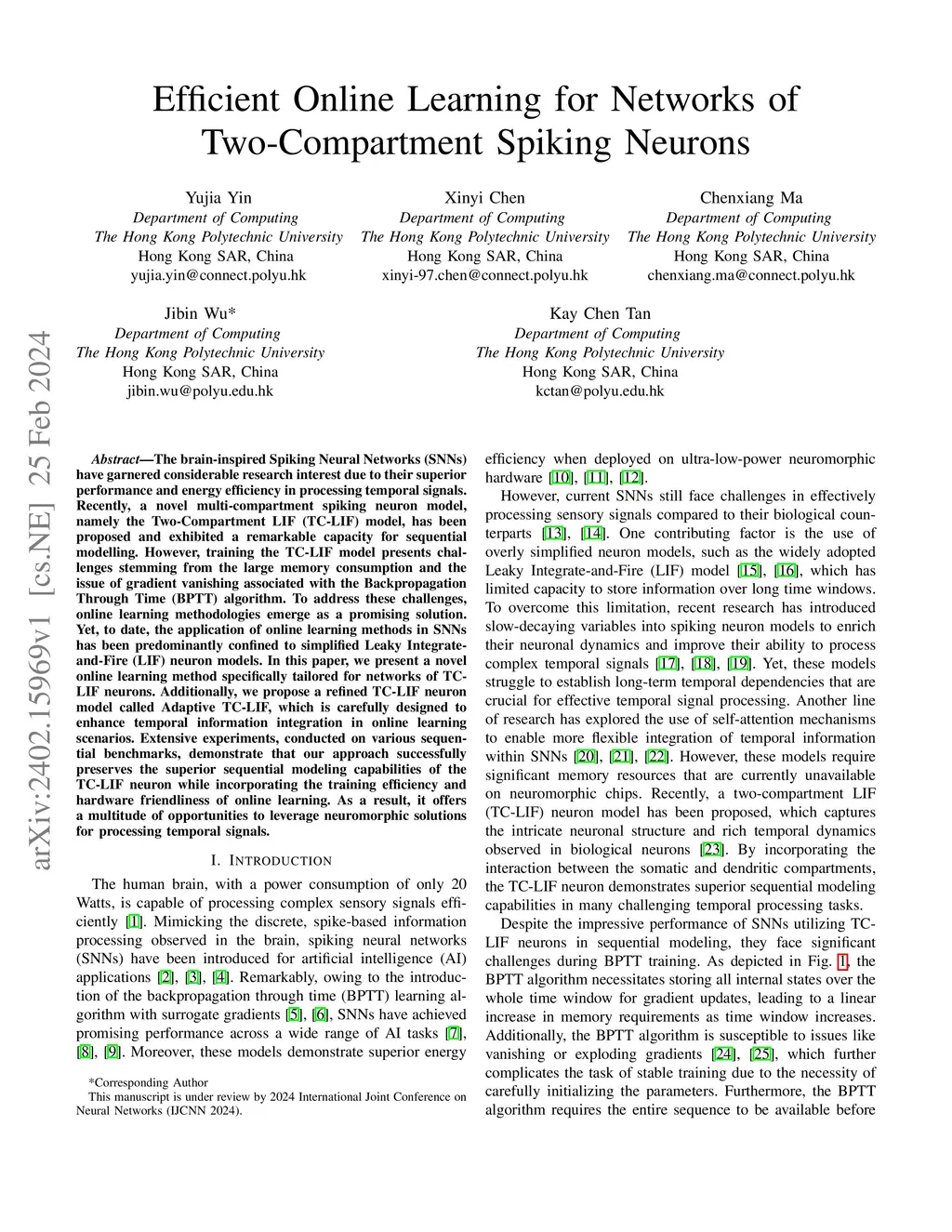 The brain-inspired Spiking Neural Networks (SNNs) have garnered considerable research interest due to their superior performance and energy efficiency in processing temporal signals. Recently, a novel multi-compartment spiking neuron model, namely the Two-Compartment LIF (TC-LIF) model, has been proposed and exhibited a remarkable capacity for sequential modelling. However, training the TC-LIF model presents challenges stemming from the large memory consumption and the issue of gradient vanishing associated with the Backpropagation Through Time (BPTT) algorithm. To address these challenges, online learning methodologies emerge as a promising solution. Yet, to date, the application of online learning methods in SNNs has been predominantly confined to simplified Leaky Integrate-and-Fire (LIF) neuron models. In this paper, we present a novel online learning method specifically tailored for networks of TC-LIF neurons. Additionally, we propose a refined TC-LIF neuron model called Adaptive TC-LIF, which is carefully designed to enhance temporal information integration in online learning scenarios. Extensive experiments, conducted on various sequential benchmarks, demonstrate that our approach successfully preserves the superior sequential modeling capabilities of the TC-LIF neuron while incorporating the training efficiency and hardware friendliness of online learning. As a result, it offers a multitude of opportunities to leverage neuromorphic solutions for processing temporal signals.