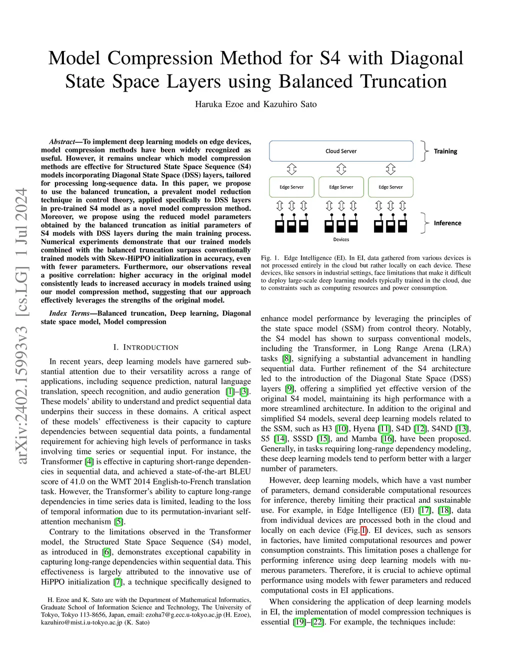 To implement deep learning models on edge devices, model compression methods have been widely recognized as useful. However, it remains unclear which model compression methods are effective for Structured State Space Sequence (S4) models incorporating Diagonal State Space (DSS) layers, tailored for processing long-sequence data. In this paper, we propose to use the balanced truncation, a prevalent model reduction technique in control theory, applied specifically to DSS layers in pre-trained S4 model as a novel model compression method. Moreover, we propose using the reduced model parameters obtained by the balanced truncation as initial parameters of S4 models with DSS layers during the main training process. Numerical experiments demonstrate that our trained models combined with the balanced truncation surpass conventionally trained models with Skew-HiPPO initialization in accuracy, even with fewer parameters. Furthermore, our observations reveal a positive correlation: higher accuracy in the original model consistently leads to increased accuracy in models trained using our model compression method, suggesting that our approach effectively leverages the strengths of the original model.