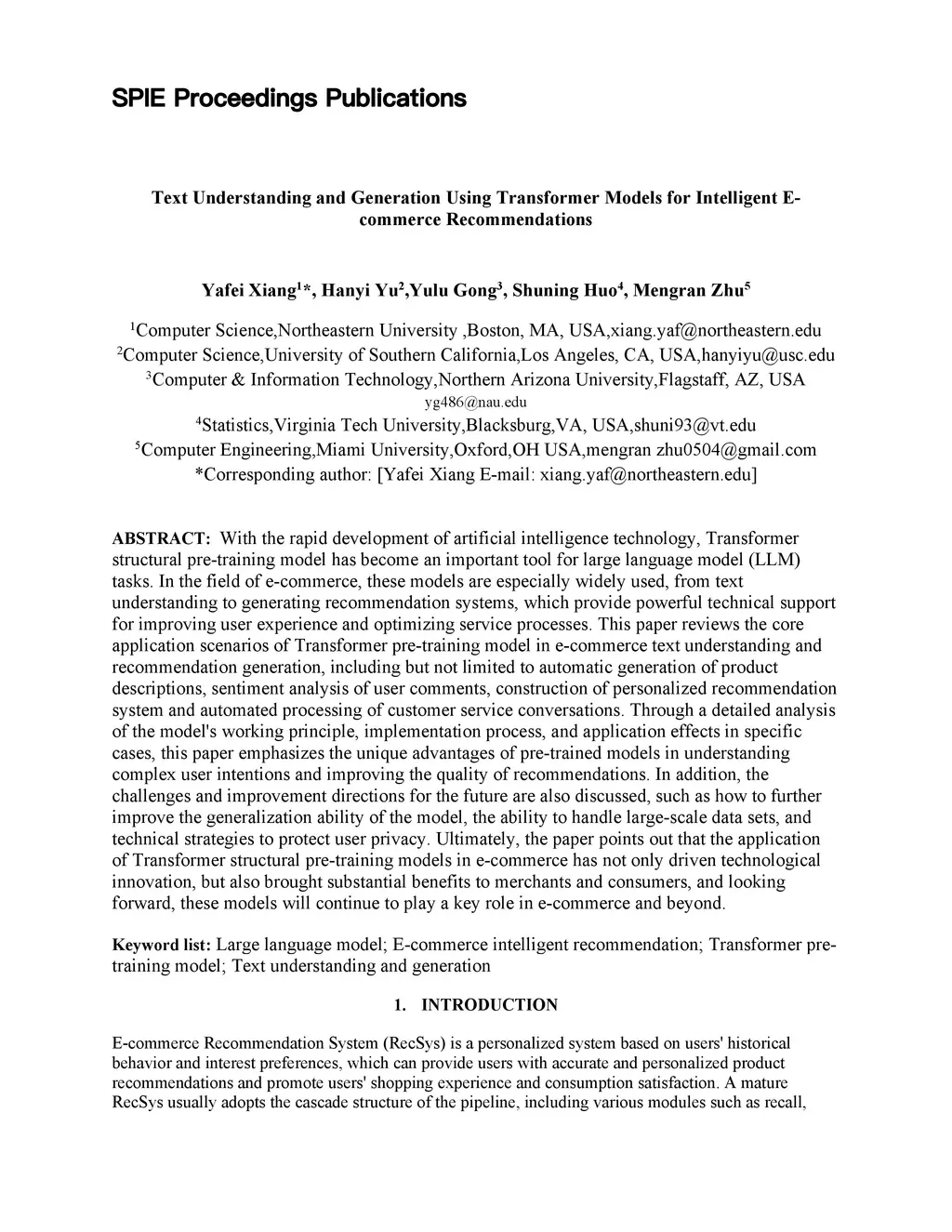 With the rapid development of artificial intelligence technology, Transformer structural pre-training model has become an important tool for large language model (LLM) tasks. In the field of e-commerce, these models are especially widely used, from text understanding to generating recommendation systems, which provide powerful technical support for improving user experience and optimizing service processes. This paper reviews the core application scenarios of Transformer pre-training model in e-commerce text understanding and recommendation generation, including but not limited to automatic generation of product descriptions, sentiment analysis of user comments, construction of personalized recommendation system and automated processing of customer service conversations. Through a detailed analysis of the model's working principle, implementation process, and application effects in specific cases, this paper emphasizes the unique advantages of pre-trained models in understanding complex user intentions and improving the quality of recommendations. In addition, the challenges and improvement directions for the future are also discussed, such as how to further improve the generalization ability of the model, the ability to handle large-scale data sets, and technical strategies to protect user privacy. Ultimately, the paper points out that the application of Transformer structural pre-training models in e-commerce has not only driven technological innovation, but also brought substantial benefits to merchants and consumers, and looking forward, these models will continue to play a key role in e-commerce and beyond.