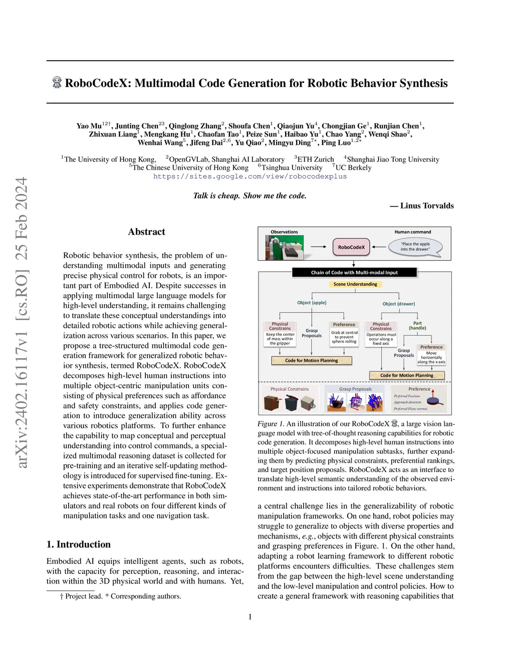 RoboCodeX: Multimodal Code Generation for Robotic Behavior Synthesis