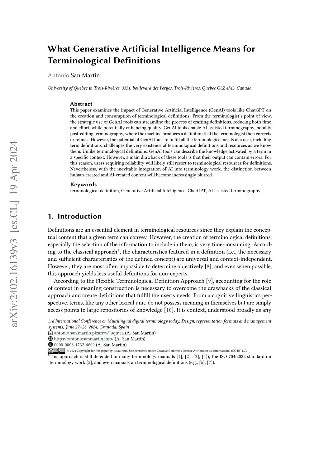 This paper examines the impact of Generative Artificial Intelligence (GenAI) tools like ChatGPT on the creation and consumption of terminological definitions. From the terminologist's point of view, the strategic use of GenAI tools can streamline the process of crafting definitions, reducing both time and effort, while potentially enhancing quality. GenAI tools enable AI-assisted terminography, notably post-editing terminography, where the machine produces a definition that the terminologist then corrects or refines. However, the potential of GenAI tools to fulfill all the terminological needs of a user, including term definitions, challenges the very existence of terminological definitions and resources as we know them. Unlike terminological definitions, GenAI tools can describe the knowledge activated by a term in a specific context. However, a main drawback of these tools is that their output can contain errors. For this reason, users requiring reliability will likely still resort to terminological resources for definitions. Nevertheless, with the inevitable integration of AI into terminology work, the distinction between human-created and AI-created content will become increasingly blurred.