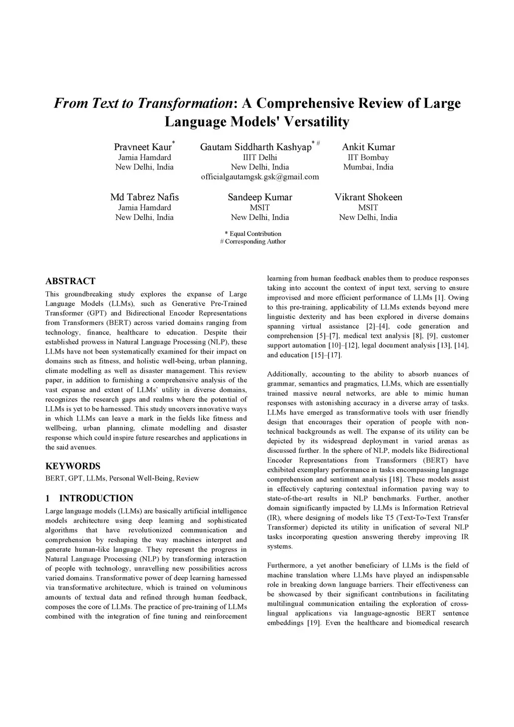 This groundbreaking study explores the expanse of Large Language Models (LLMs), such as Generative Pre-Trained Transformer (GPT) and Bidirectional Encoder Representations from Transformers (BERT) across varied domains ranging from technology, finance, healthcare to education. Despite their established prowess in Natural Language Processing (NLP), these LLMs have not been systematically examined for their impact on domains such as fitness, and holistic well-being, urban planning, climate modelling as well as disaster management. This review paper, in addition to furnishing a comprehensive analysis of the vast expanse and extent of LLMs' utility in diverse domains, recognizes the research gaps and realms where the potential of LLMs is yet to be harnessed. This study uncovers innovative ways in which LLMs can leave a mark in the fields like fitness and wellbeing, urban planning, climate modelling and disaster response which could inspire future researches and applications in the said avenues.