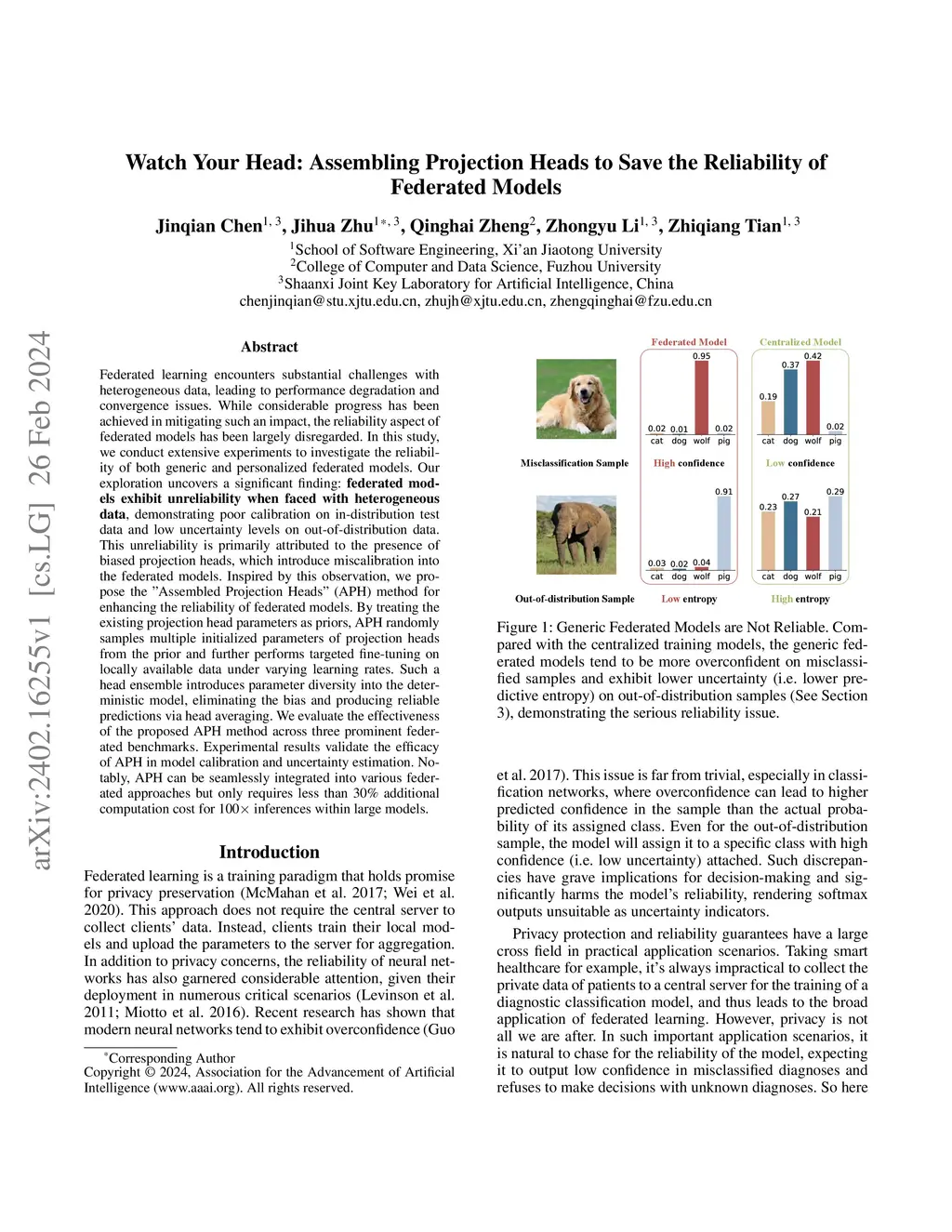 Federated learning encounters substantial challenges with heterogeneous data, leading to performance degradation and convergence issues. While considerable progress has been achieved in mitigating such an impact, the reliability aspect of federated models has been largely disregarded. In this study, we conduct extensive experiments to investigate the reliability of both generic and personalized federated models. Our exploration uncovers a significant finding: \textbf{federated models exhibit unreliability when faced with heterogeneous data}, demonstrating poor calibration on in-distribution test data and low uncertainty levels on out-of-distribution data. This unreliability is primarily attributed to the presence of biased projection heads, which introduce miscalibration into the federated models. Inspired by this observation, we propose the "Assembled Projection Heads" (APH) method for enhancing the reliability of federated models. By treating the existing projection head parameters as priors, APH randomly samples multiple initialized parameters of projection heads from the prior and further performs targeted fine-tuning on locally available data under varying learning rates. Such a head ensemble introduces parameter diversity into the deterministic model, eliminating the bias and producing reliable predictions via head averaging. We evaluate the effectiveness of the proposed APH method across three prominent federated benchmarks. Experimental results validate the efficacy of APH in model calibration and uncertainty estimation. Notably, APH can be seamlessly integrated into various federated approaches but only requires less than 30\% additional computation cost for 100 inferences within large models.