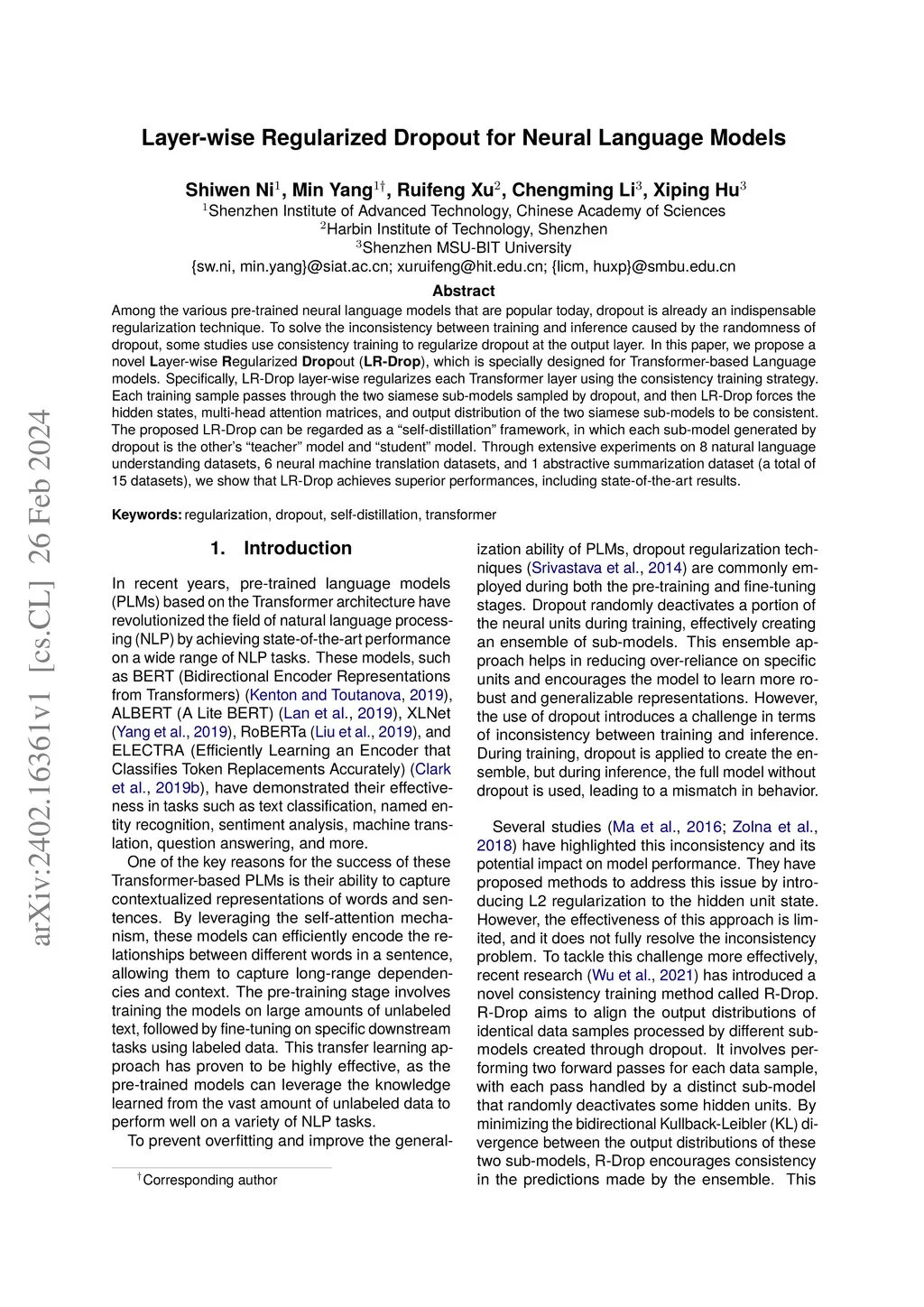 Among the various pre-trained neural language models that are popular today, dropout is already an indispensable regularization technique. To solve the inconsistency between training and inference caused by the randomness of dropout, some studies use consistency training to regularize dropout at the output layer. In this paper, we propose a novel Layer-wise Regularized Dropout (LR-Drop), which is specially designed for Transformer-based Language models. Specifically, LR-Drop layer-wise regularizes each Transformer layer using the consistency training strategy. Each training sample passes through the two siamese sub-models sampled by dropout, and then LR-Drop forces the hidden states, multi-head attention matrices, and output distribution of the two siamese sub-models to be consistent. The proposed LR-Drop can be regarded as a "self-distillation" framework, in which each sub-model generated by dropout is the other's "teacher" model and "student" model. Through extensive experiments on 8 natural language understanding datasets, 6 neural machine translation datasets, and 1 abstractive summarization dataset (a total of 15 datasets), we show that LR-Drop achieves superior performances, including state-of-the-art results.