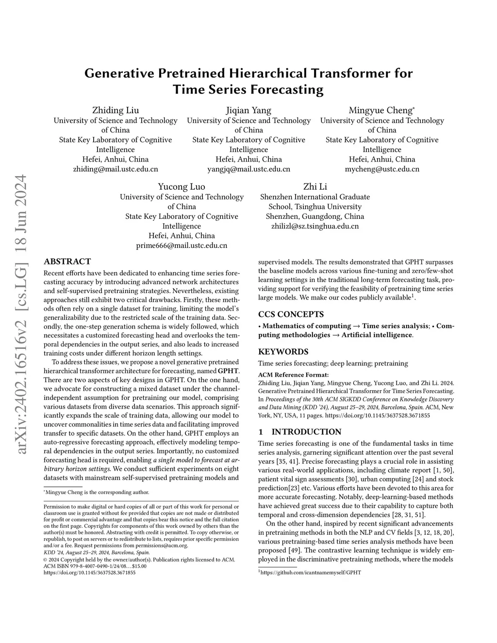 Generative Pretrained Hierarchical Transformer for Time Series