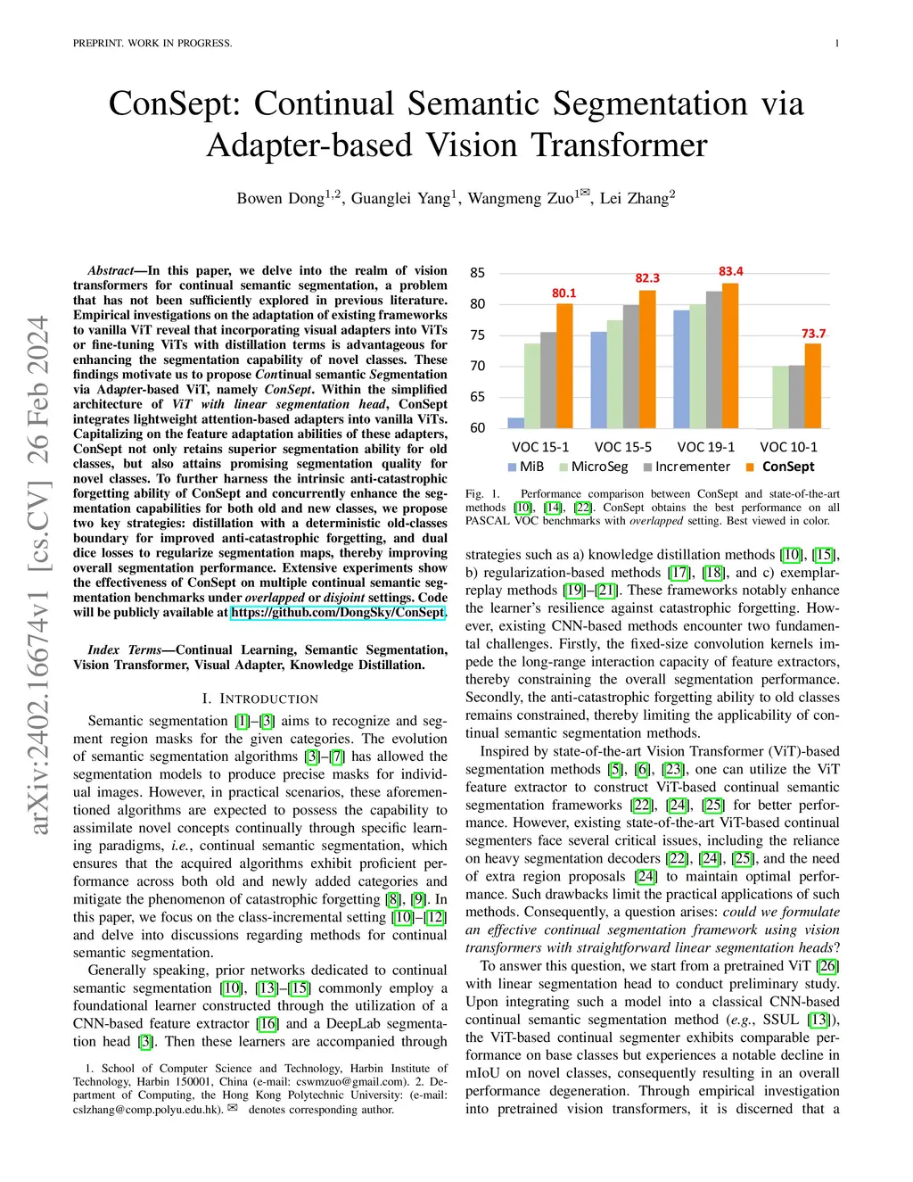 ConSept: Continual Semantic Segmentation via Adapter-based Vision