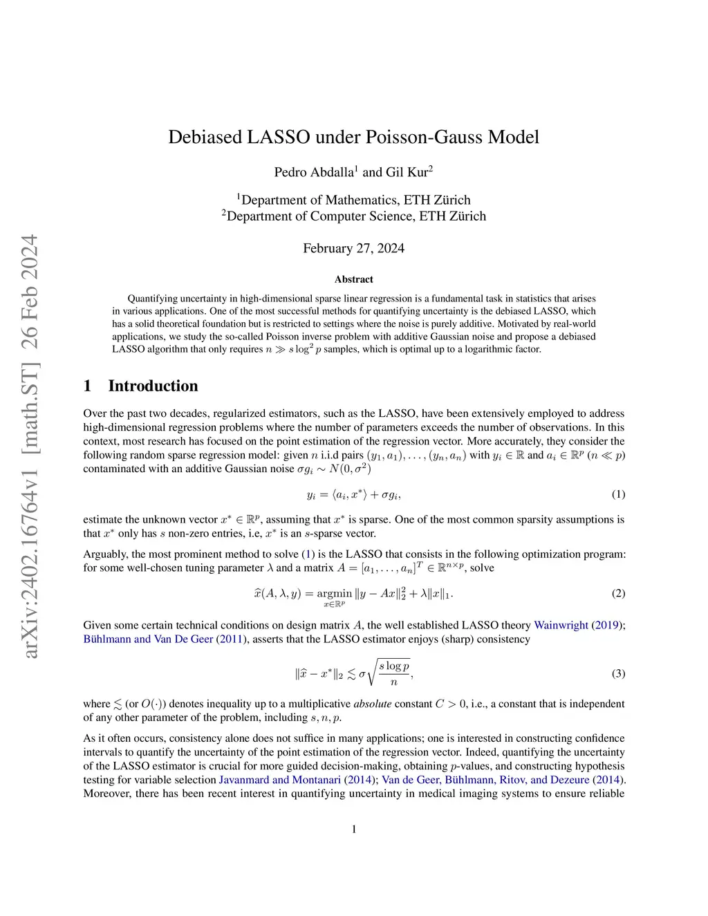 Debiased LASSO under Poisson-Gauss Model
