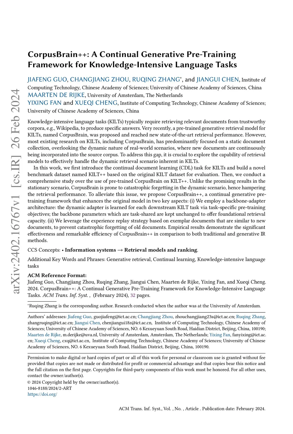 CorpusBrain++: A Continual Generative Pre-Training Framework for