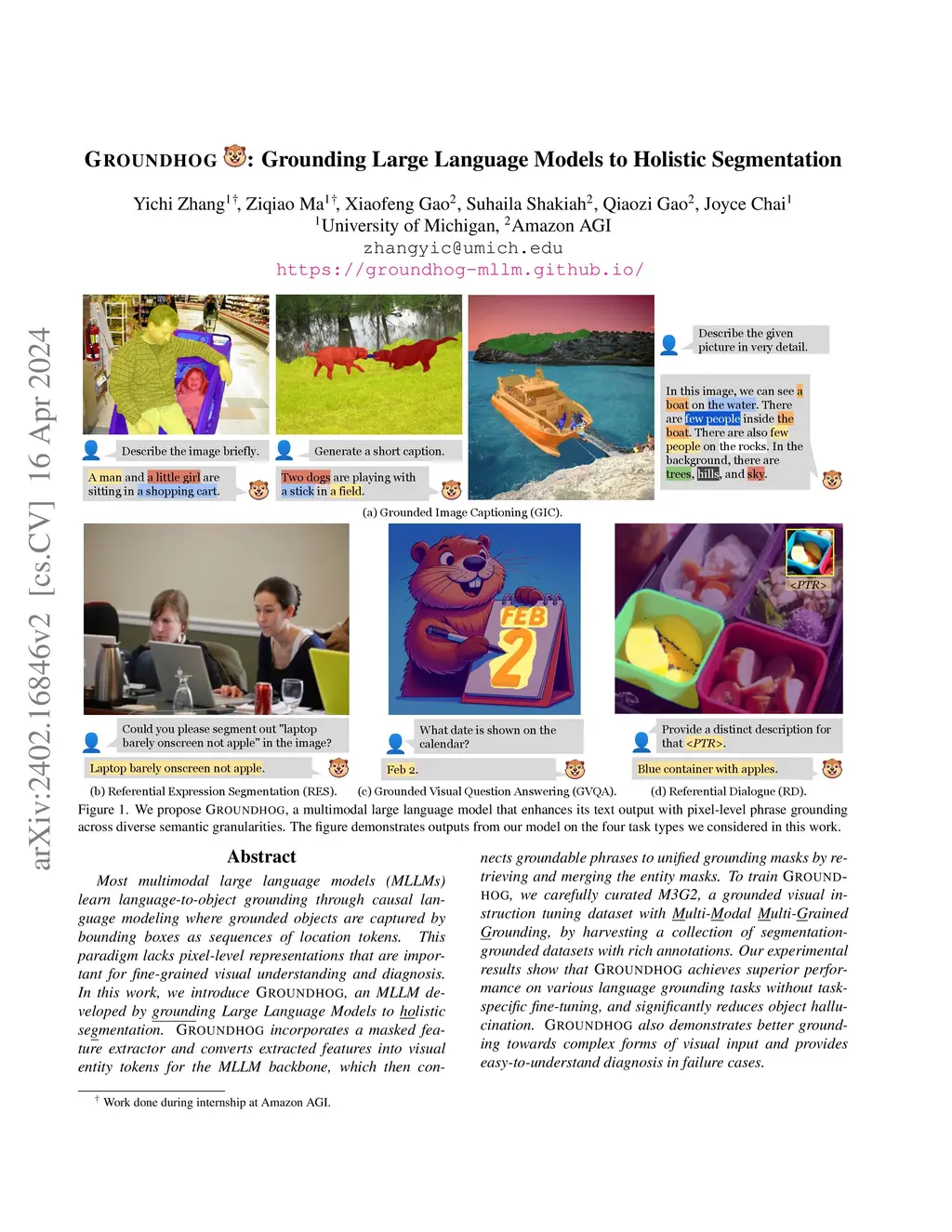 GROUNDHOG: Grounding Large Language Models to Holistic Segmentation