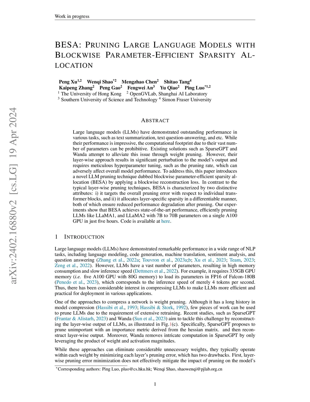 BESA: Pruning Large Language Models with Blockwise Parameter-Efficient