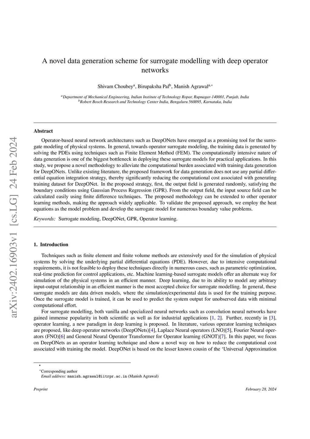 A novel data generation scheme for surrogate modelling with deep