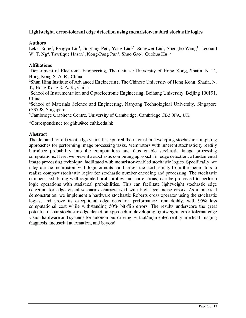 Lightweight, error-tolerant edge detection using memristor-enabled