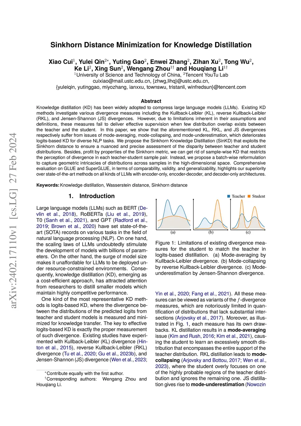 Sinkhorn Distance Minimization for Knowledge Distillation