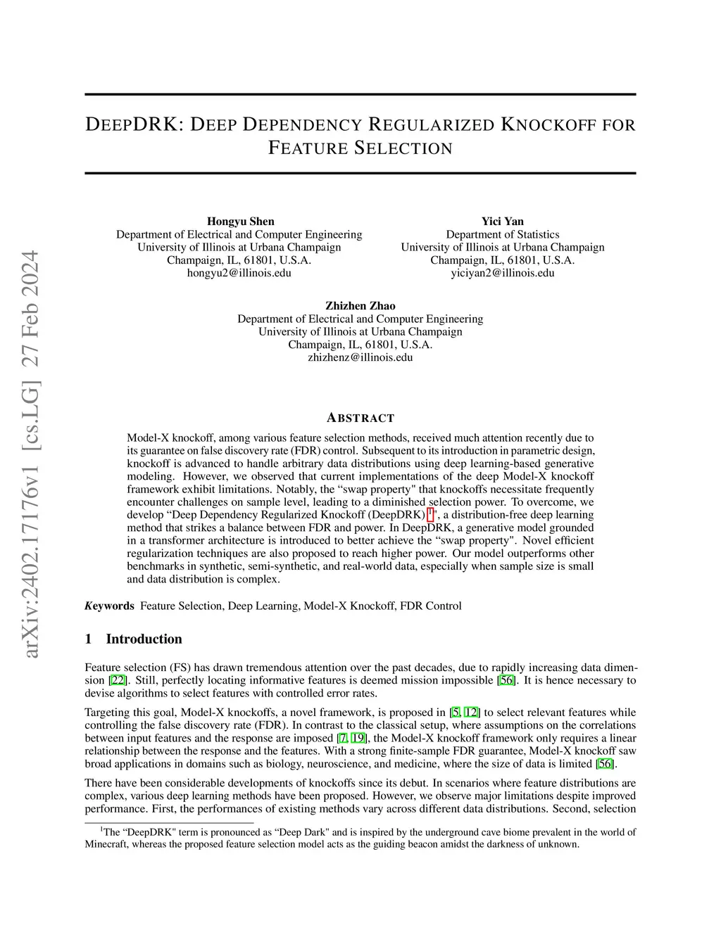 DeepDRK: Deep Dependency Regularized Knockoff for Feature Selection