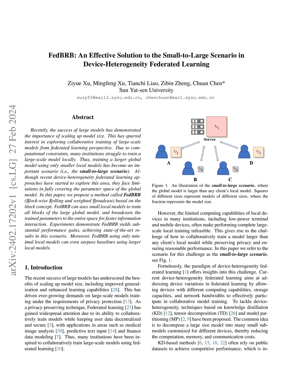 FedBRB: An Effective Solution to the Small-to-Large Scenario in
