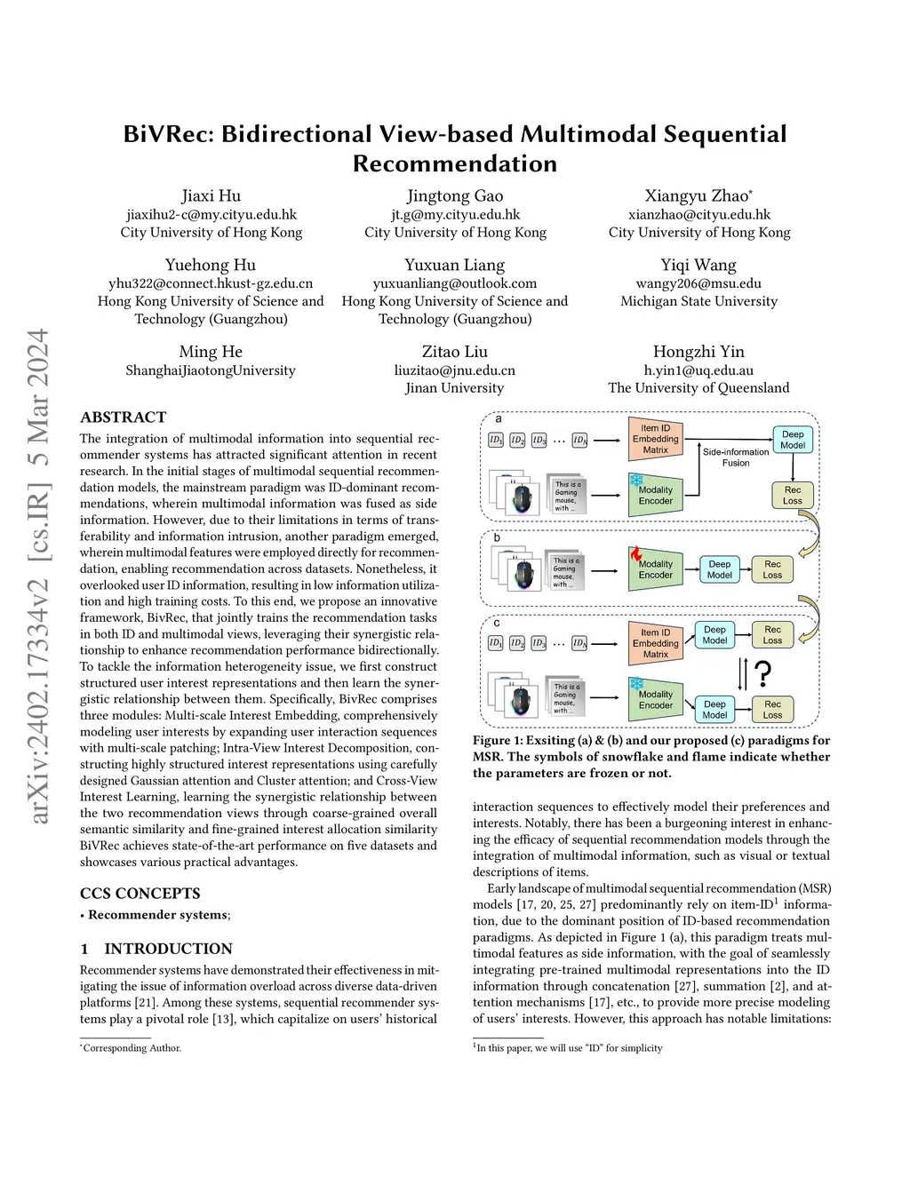BiVRec: Bidirectional View-based Multimodal Sequential Recommendation