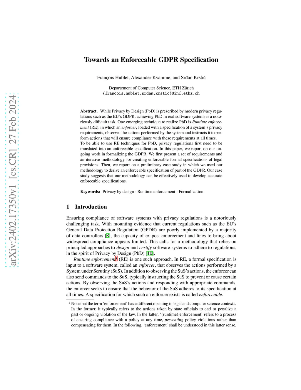 Towards an Enforceable GDPR Specification