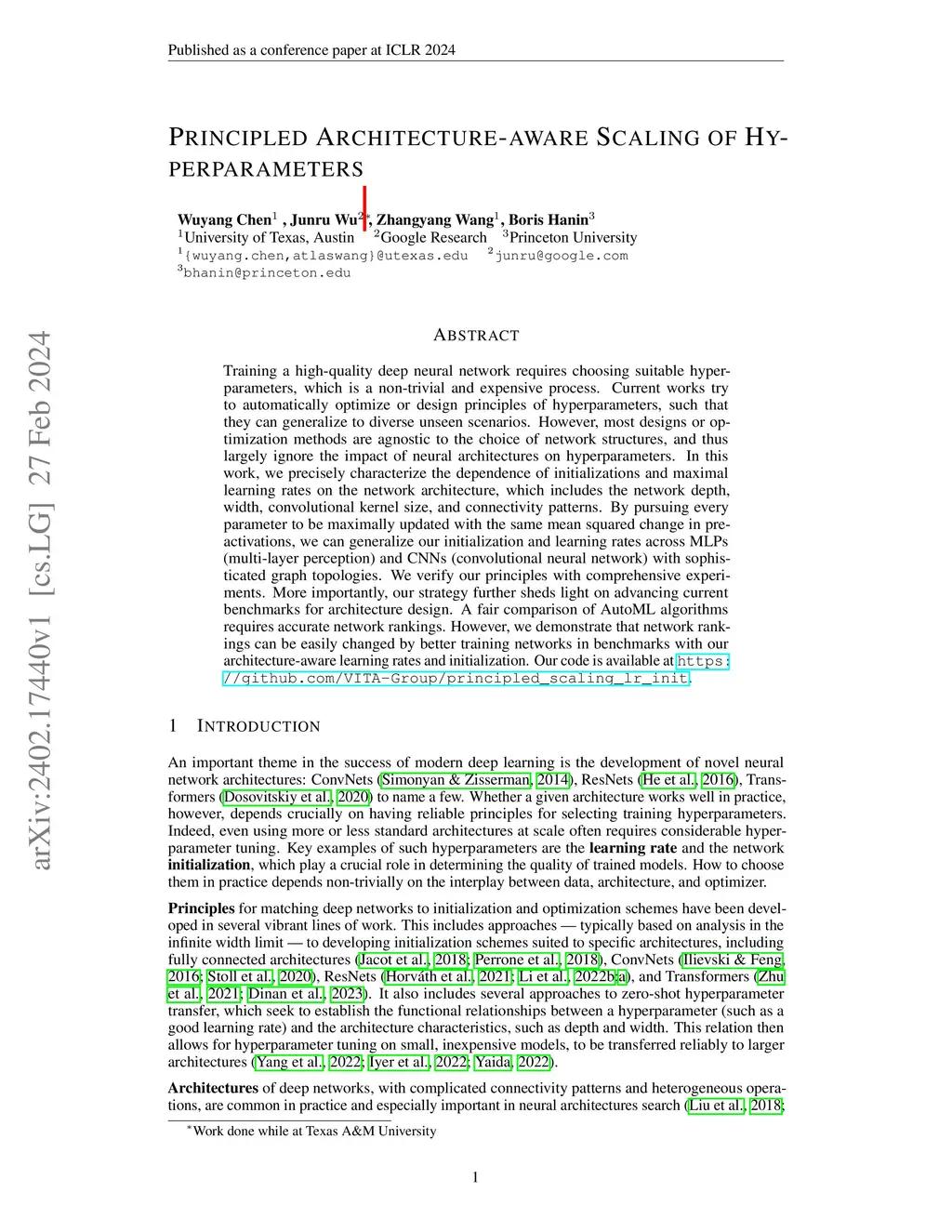 Training a high-quality deep neural network requires choosing suitable hyperparameters, which is a non-trivial and expensive process. Current works try to automatically optimize or design principles of hyperparameters, such that they can generalize to diverse unseen scenarios. However, most designs or optimization methods are agnostic to the choice of network structures, and thus largely ignore the impact of neural architectures on hyperparameters. In this work, we precisely characterize the dependence of initializations and maximal learning rates on the network architecture, which includes the network depth, width, convolutional kernel size, and connectivity patterns. By pursuing every parameter to be maximally updated with the same mean squared change in pre-activations, we can generalize our initialization and learning rates across MLPs (multi-layer perception) and CNNs (convolutional neural network) with sophisticated graph topologies. We verify our principles with comprehensive experiments. More importantly, our strategy further sheds light on advancing current benchmarks for architecture design. A fair comparison of AutoML algorithms requires accurate network rankings. However, we demonstrate that network rankings can be easily changed by better training networks in benchmarks with our architecture-aware learning rates and initialization.