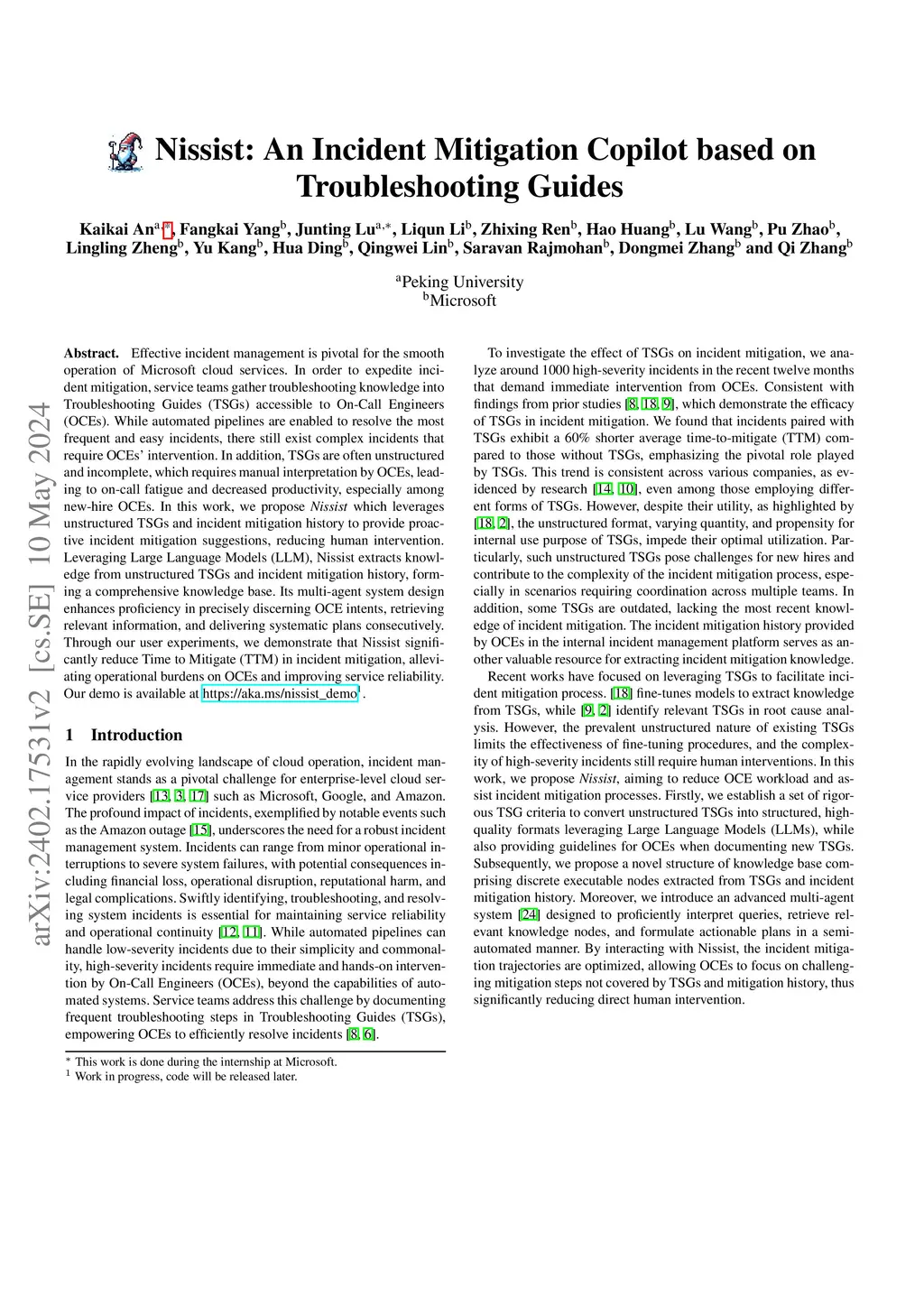 Nissist: An Incident Mitigation Copilot based on Troubleshooting Guides