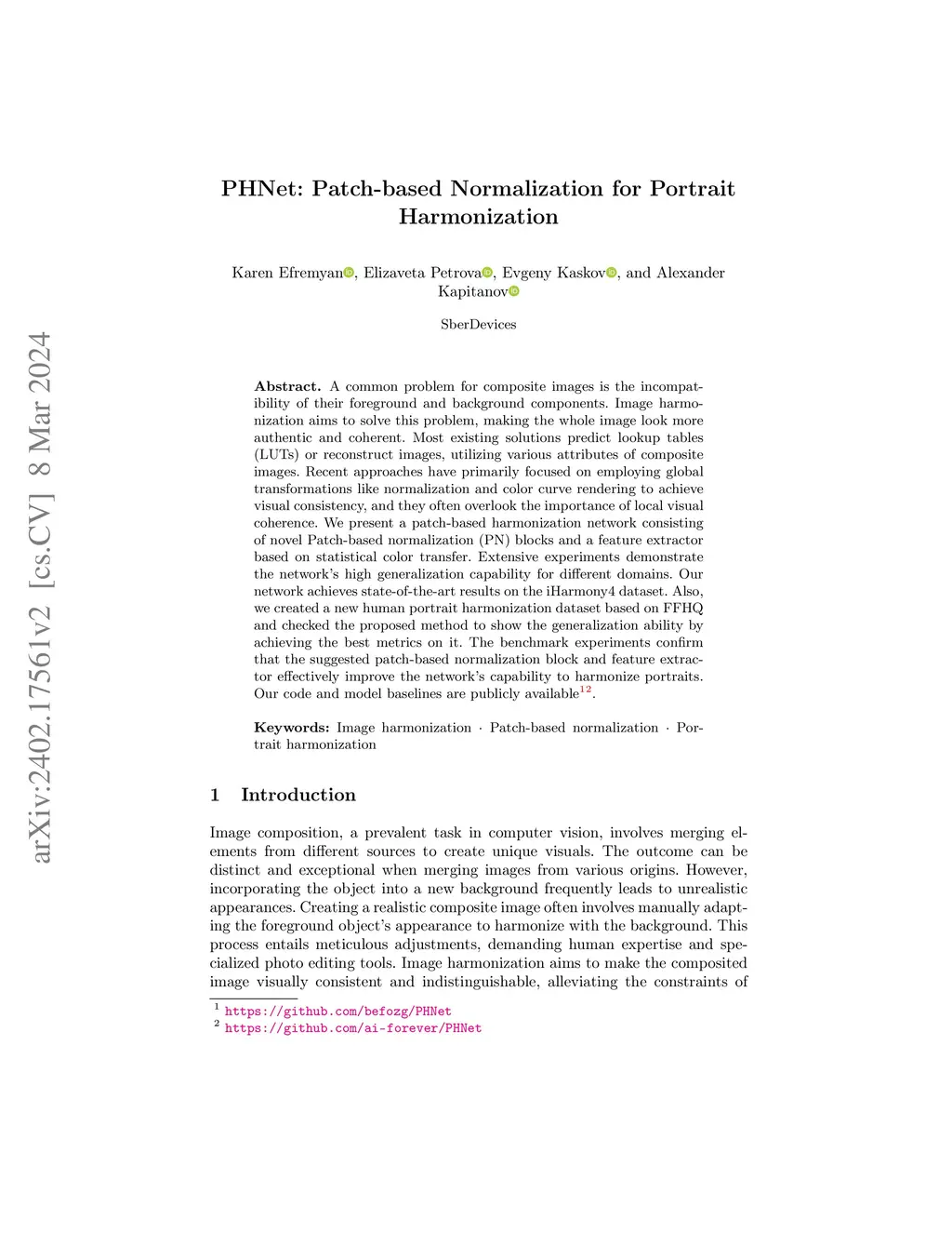 PHNet: Patch-based Normalization for Portrait Harmonization